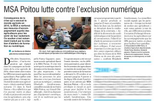 Difficultés financières, mal être… C’est la résignation qui régnait dans les campagnes au lendemain de la crise agricole de 2016, observaient alors toutes les OPA intervenant auprès des agriculteurs. Pour pallier cette passe difficile un « Groupe territorial de soutien aux agriculteurs » s’était constitué l’année suivante (1) dans le Nord Vienne. « On a réfléchi à ce que l’on pouvait mettre en place d’utile et qui pouvait concerner tous les agriculteurs, sans stigmatiser qui que ce soit », rappelle Fanny Gagnaire, assistante sociale, spécialisée Santé à la MSA Poitou. Il s’est vite avéré que le numérique était le domaine où les besoins étaient les plus importants. « Aujourd’hui, tout est dématérialisé.