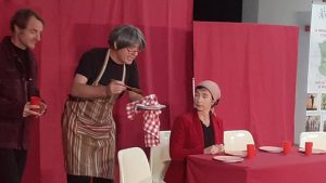 La MSA services Poitou met en œuvre des programmes de prévention et d’éducation pour la santé en partenariat avec l’ensemble des caisses de retraites. Tout un programme se décline autour du bien vieillir. Ce lundi 4 octobre, à Charroux, le thème abordé était celui des aidants. La compagnie Entrée de jeu proposait un débat théâtral : Point(s) d’appui, conçu comme un spectacle. L’entrée gratuite était ouverte à tous. Les comédiens jouent quatre saynètes : Bulle d’air où l’aidant veut tenir le coup ; Soupe à la grimace ou « Faut-il tout faire à sa place pour aller plus vite ? » ; Au bout du rouleau, ou « Je préfère tout faire moi-même, les aides compliquant les choses » ; et enfin L’aidant de l’aidant de l’aidé ou « Qui peut aider l’aidant ? » Bien évidemment, il y a beaucoup à dire sur ces scènes de la vie quotidienne et c’est là que les participants interviennent, apportent des idées, des modifications. Les comédiens vont rejouer la scène en tenant compte des apports et avec l’aide des intervenants. Les actions de préventions de la MSA Services proposent des ateliers en plusieurs séances avec les thèmes suivants : capital santé, nutrition, troubles de mémoire, mobilité et autonomie, équilibre, au volant, ou encore médiation numérique. On peut s’inscrire au plus près de chez soi en contactant le 05.49.43.86.68.