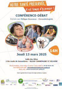 CONFÉRENCE-DÉBAT – Votre santé préservée, il est temps d’y penser ! – 86160 Champagné St Hilaire