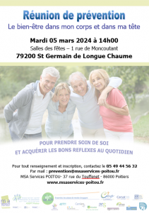 REUNION DE PREVENTION – Le bien-être dans mon corps et dans ma tête – 79200 St-Germain de Longue Chaume